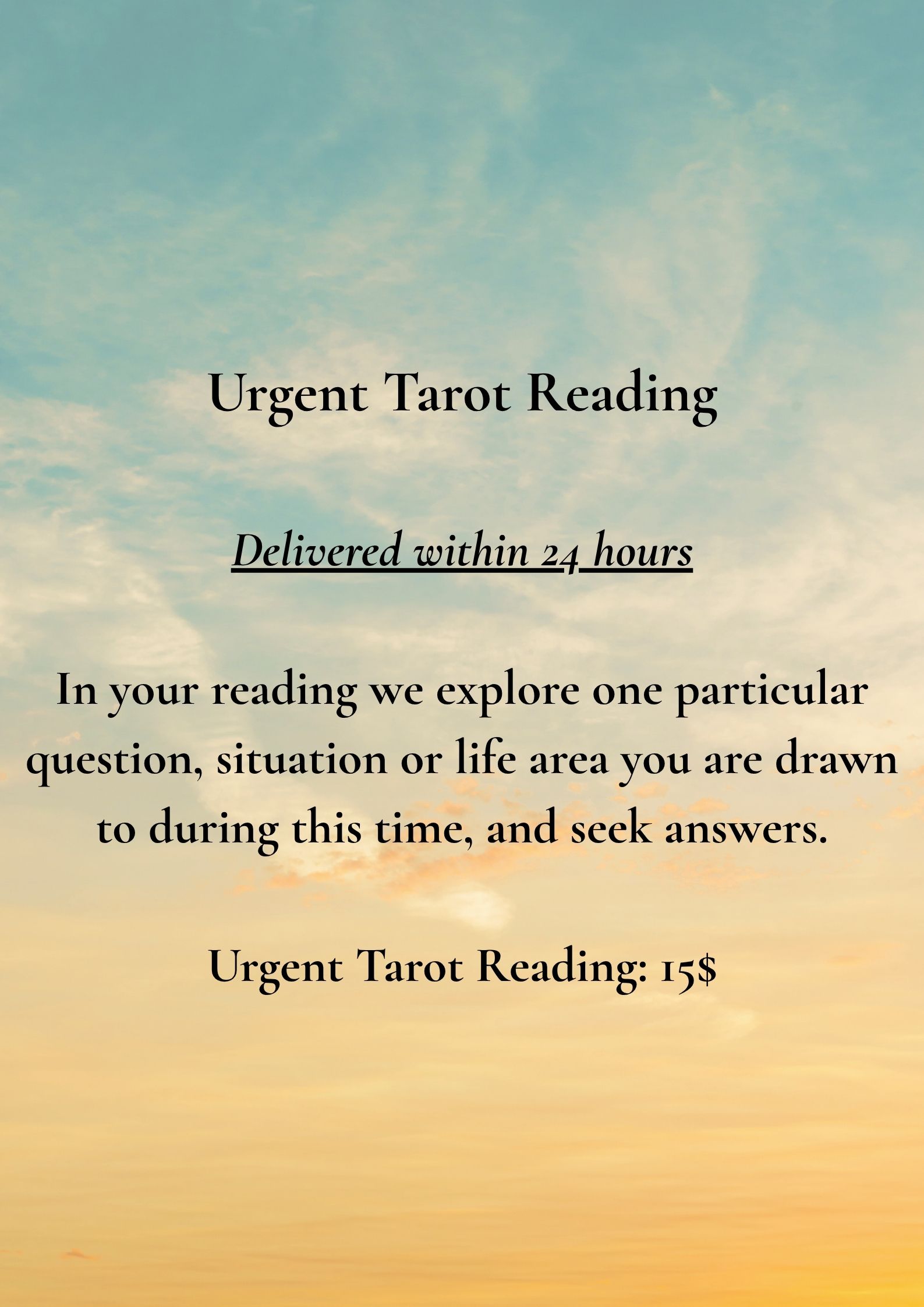 ✦ Turnaround time: 2 – 7 days. The Urgent Tarot reading is delivered within 24 hours